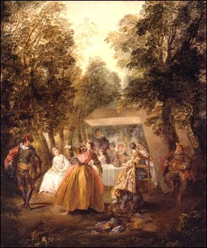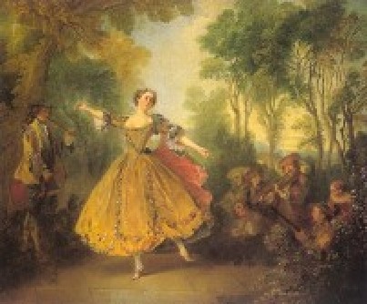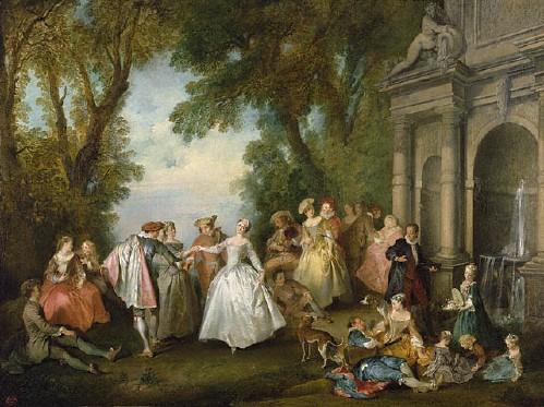 Lancret : Danse en plein air. Huile sur toile (40x27 cm)(1705/1743)